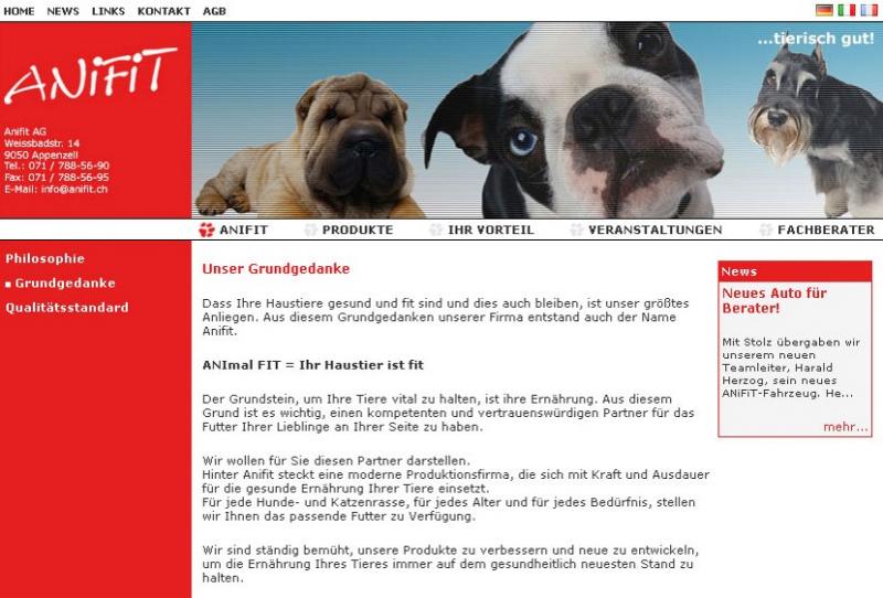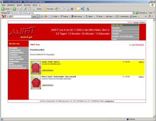 Dès le début, ANiFiT utilise les avantages et les possibilités d'Internet. En 2005, le Shop en ligne est mis en service et l'intranet est développé. Les statistiques du web montrent que cette stratégie est correcte: par exemple, en octobre 2005, le site web a eu une moyenne de 430 visiteurs et la durée moyenne d'une visite était de 9 minutes. La présence sur Internet apporte une valeur ajoutée tangible - à un coût très faible.