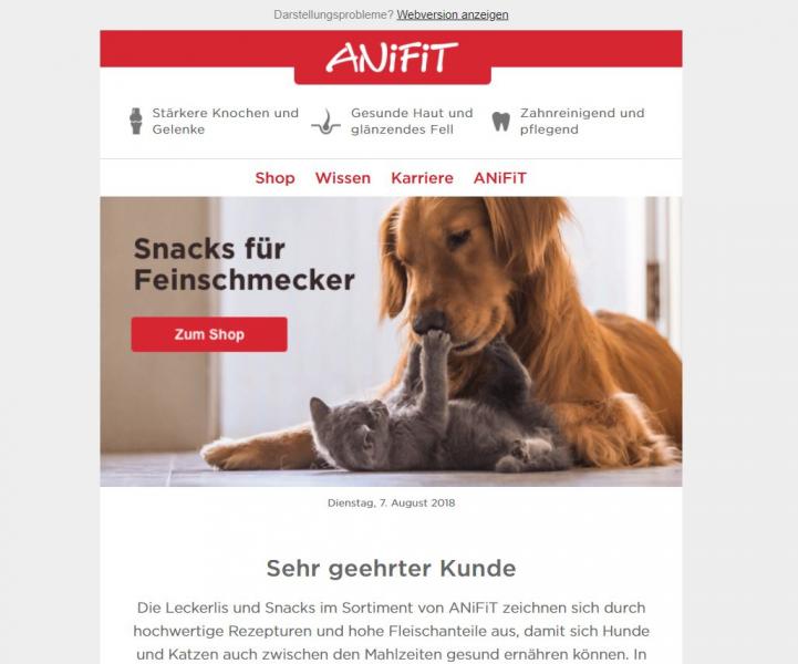 ANiFiT s'appuie également sur des mesures numériques en matière de marketing. Grâce à l'utilisation d'un marketing en ligne professionnel avec le marketing des moteurs de recherche, l'optimisation des moteurs de recherche (SEO) et le marketing des médias sociaux, la visibilité sur le web est considérablement accrue. Un nouveau blog a également été créé sur le site web, qui contient des articles informatifs sur le monde de la santé et de l'alimentation animale.